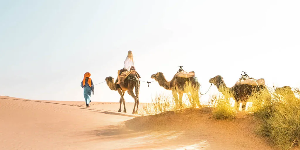Experiencia en el desierto del Sahara con camellos y campamento de lujo