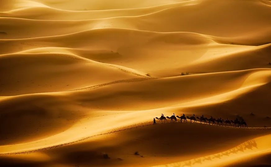 Viaje hacia el sur pasando por Ifrane y el bosque de cedros, hogar de los macacos de Berbería. Continuamos hacia Midelt y el valle del Ziz. Por la tarde, llegada al desierto de Merzouga y paseo en camello al atardecer. Cena y noche en campamento de lujo.