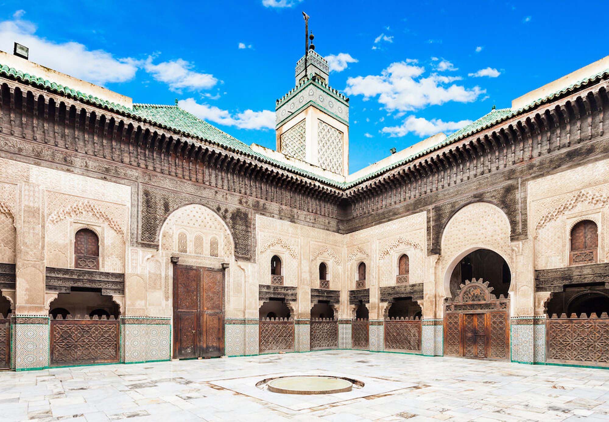 Tras el desayuno, recorrido hacia Fez, una de las ciudades imperiales más importantes de Marruecos. Visita de medina, mercados tradicionales y monumentos históricos. Tiempo libre para descubrir la ciudad por cuenta propia. Cena y alojamiento en hotel local.